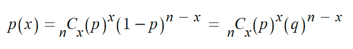 ※n → 시험 횟수, x → 성공횟수, p → 독립 시행에서의 성공 확률, 1-p = q(독립 시행에서의 실패 확률)