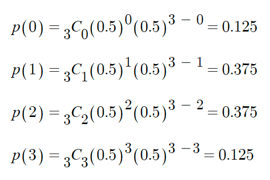 동전이 앞면이 나올 확률은 50% 이고 우리는 총 3번의 동전 던지기를 하였을 때,