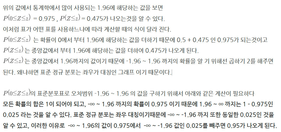 데이터가 ±1.96 표준편차에 포함될 확률은 95%라고 이전 글에서 언급을 한적이 있다.