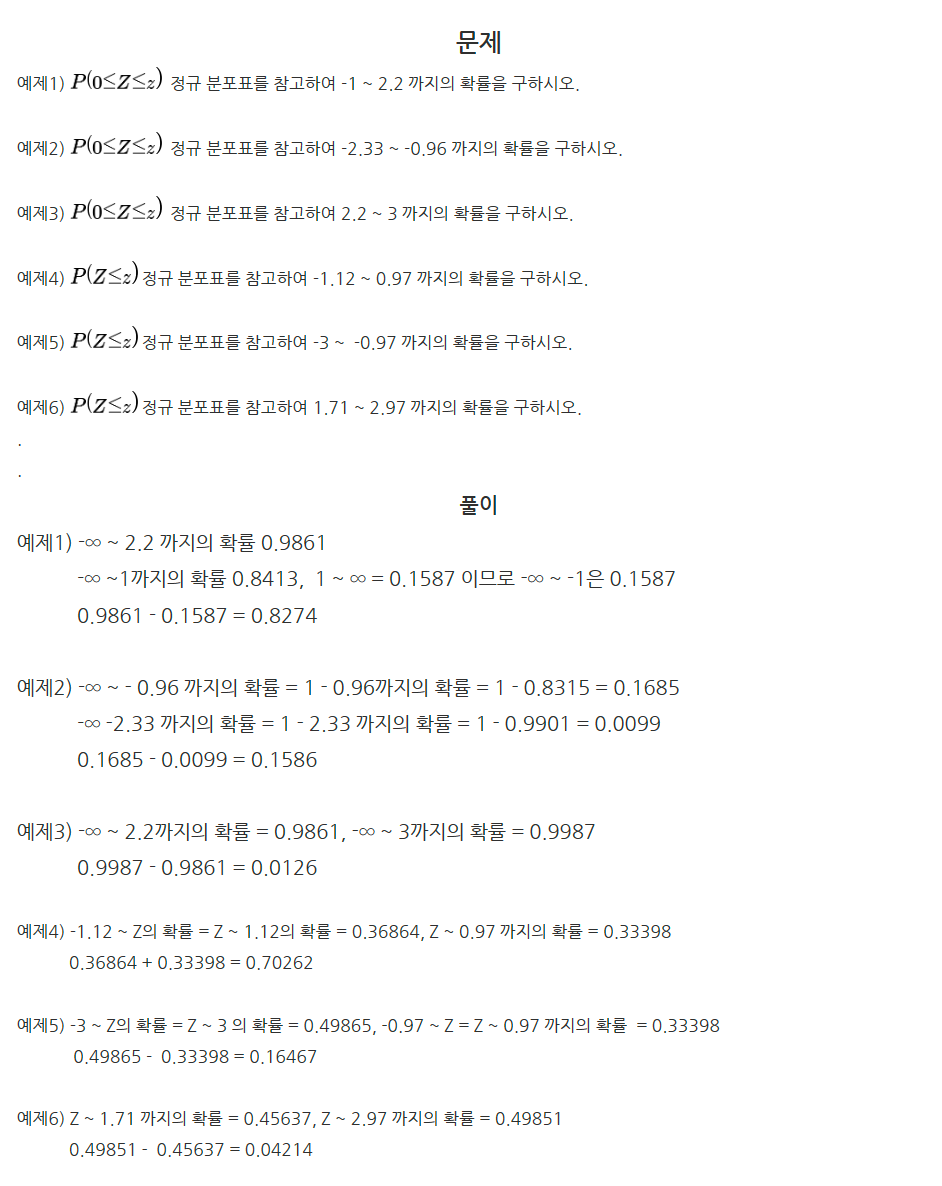 정규분포표는 P(Z≤z) 또는 P(0≤Z≤z) 로 나타내는것이 일반적이다.