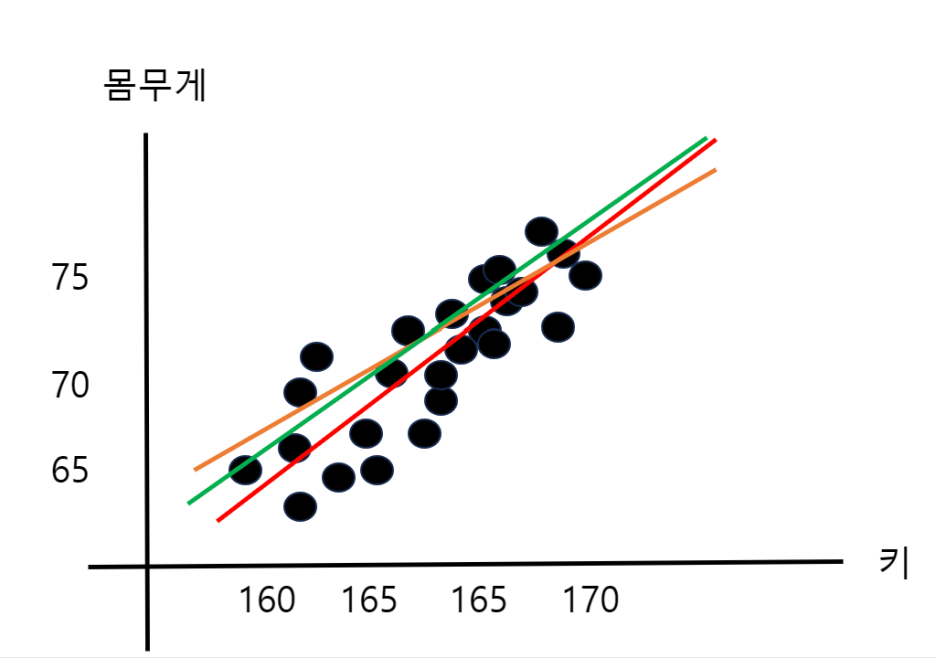 우리는 SSE 오차제곱합을 구하여 값이 가장 작은 선을 가장 좋은 선이라고 할 수 있다.
