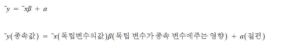 우리가 구하려는 선은 중학교때 배우는 y = ax + b 라는 공식에 대입하여서 표현 할 수 있는데