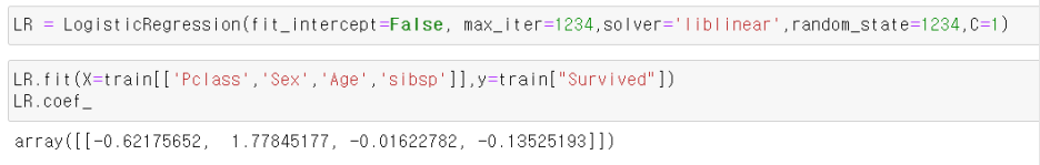 Logistic_model = LogisticRegression().fit(X=train[['Pclass','Sex','Age','sibsp']],y=train["Survived"])