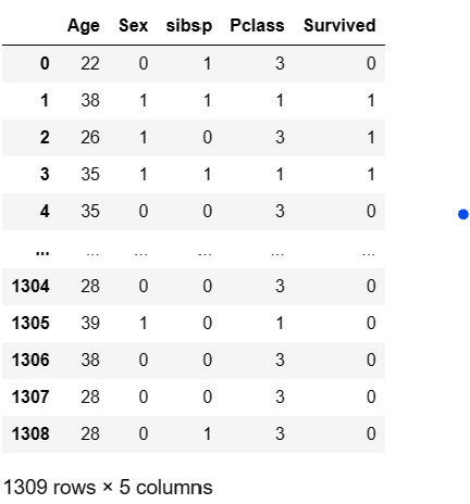 우선 사용하는 Data는 kaggle의 titanic 을 사용할려고 하고 아래의 내용을 담고 있고, 성별을 의미하는행은 독립 변수가 명목형변수 이기때문에 이를 0,1로 수치형 변수로 변경되어 있습니다.