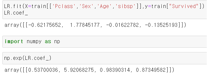 np.exp 안의 각각의 값이 각 독립변수에 대한 승산비이다.