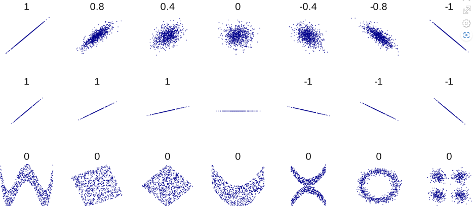 - 상관 계수가 0에 근접한다고 하여 상관 관계가 무조건 없는것은 아니다. ex)아래의 w형태 등